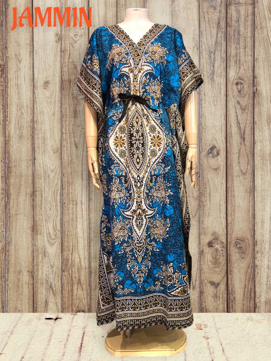 - アジアンペーズリー柄ロングワンピ 水色 ヒッピー アジアン エスニック ワンピ