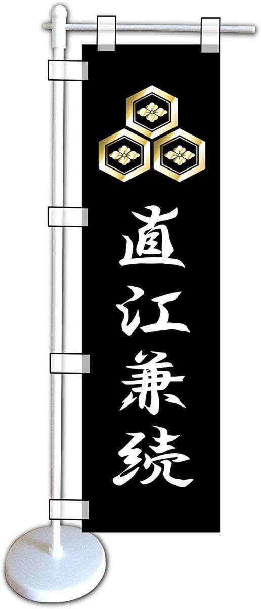 > ミニのぼり「直江兼続 ミニのぼり旗 直江兼続 ミニ幟旗 黒金【三つ盛り亀甲に花菱】 家紋 戦国武将 前立て 愛軍旗 兼続 軍旗 D」送料360円