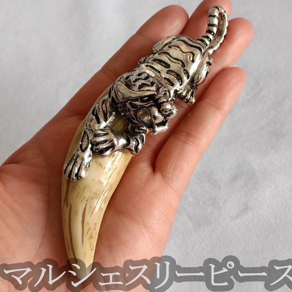 - 極美品!トラ牙の工芸品 美術品 樹脂製 浮き彫り ストラップ 置物 鑑賞 美品 コレクション 装飾 アクセサリー