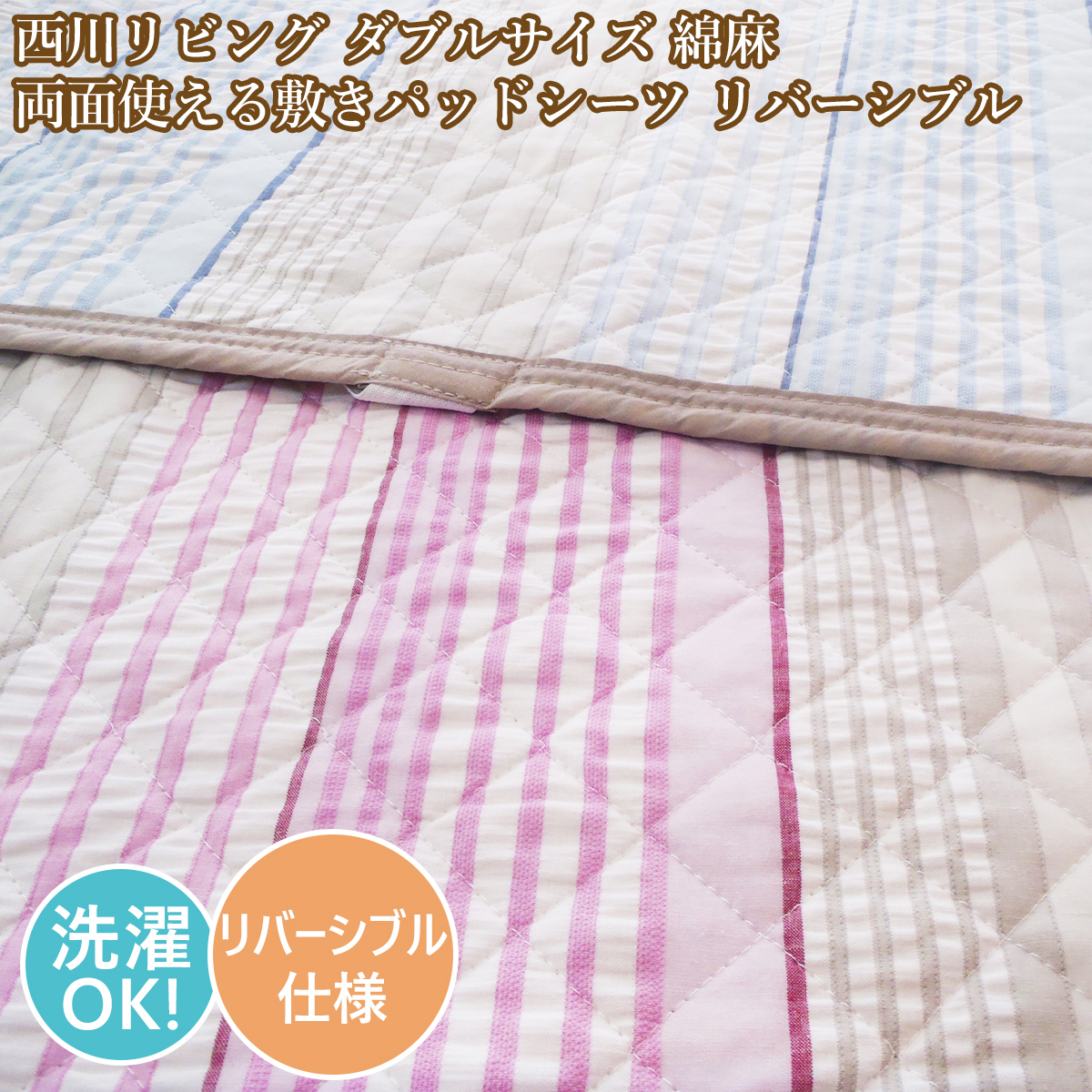 - 西川 敷きパッドダブル 綿麻 敷きパットダブル 敷パッドダブル 西川 サッカー生地 リバーシブル