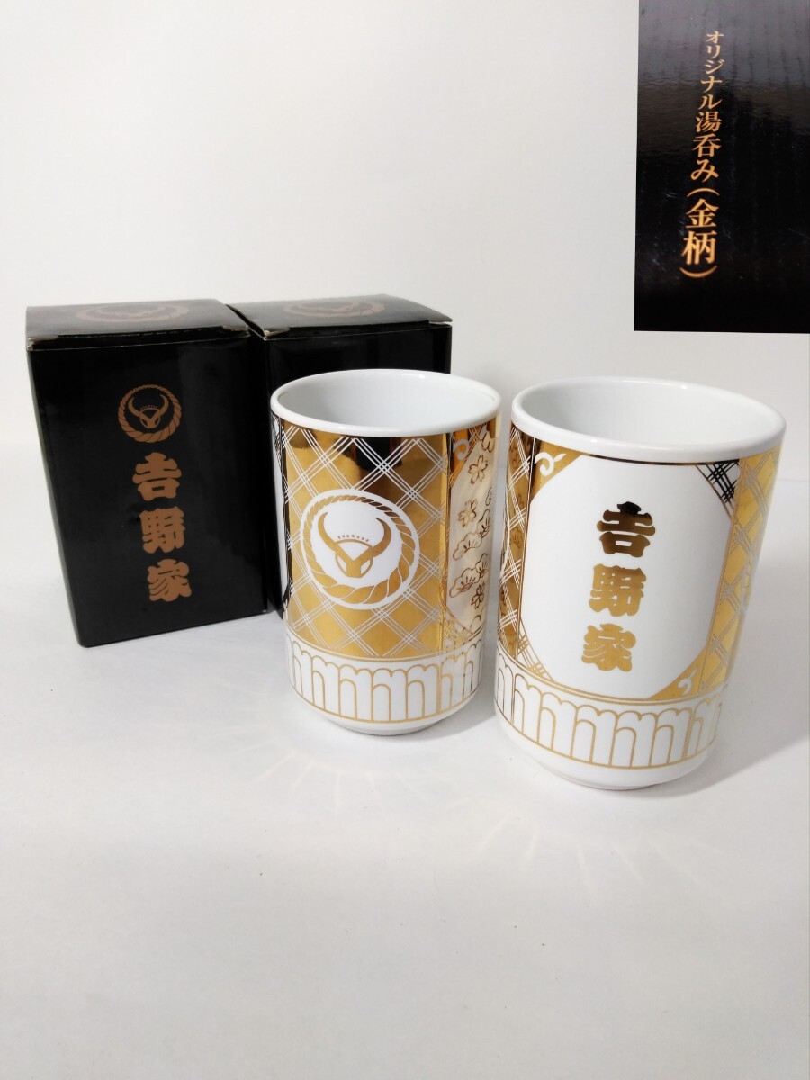 - 非売品 吉野家 金柄 湯呑 2客セット 茶器 煎茶 金彩 陶器 (検索) 牛丼 オリジナル 和食器 限定 グッズ コップ グラス 酒器 酒杯 ゴールド