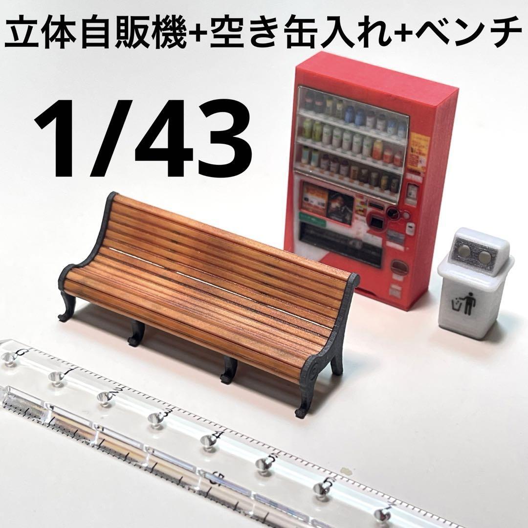 - 1/43 立体自販機 空き缶入れ ベンチ ミニチュア フィギュア 1/64より大 自販機 ミニカーに 住宅模型に ジオラマに 3D