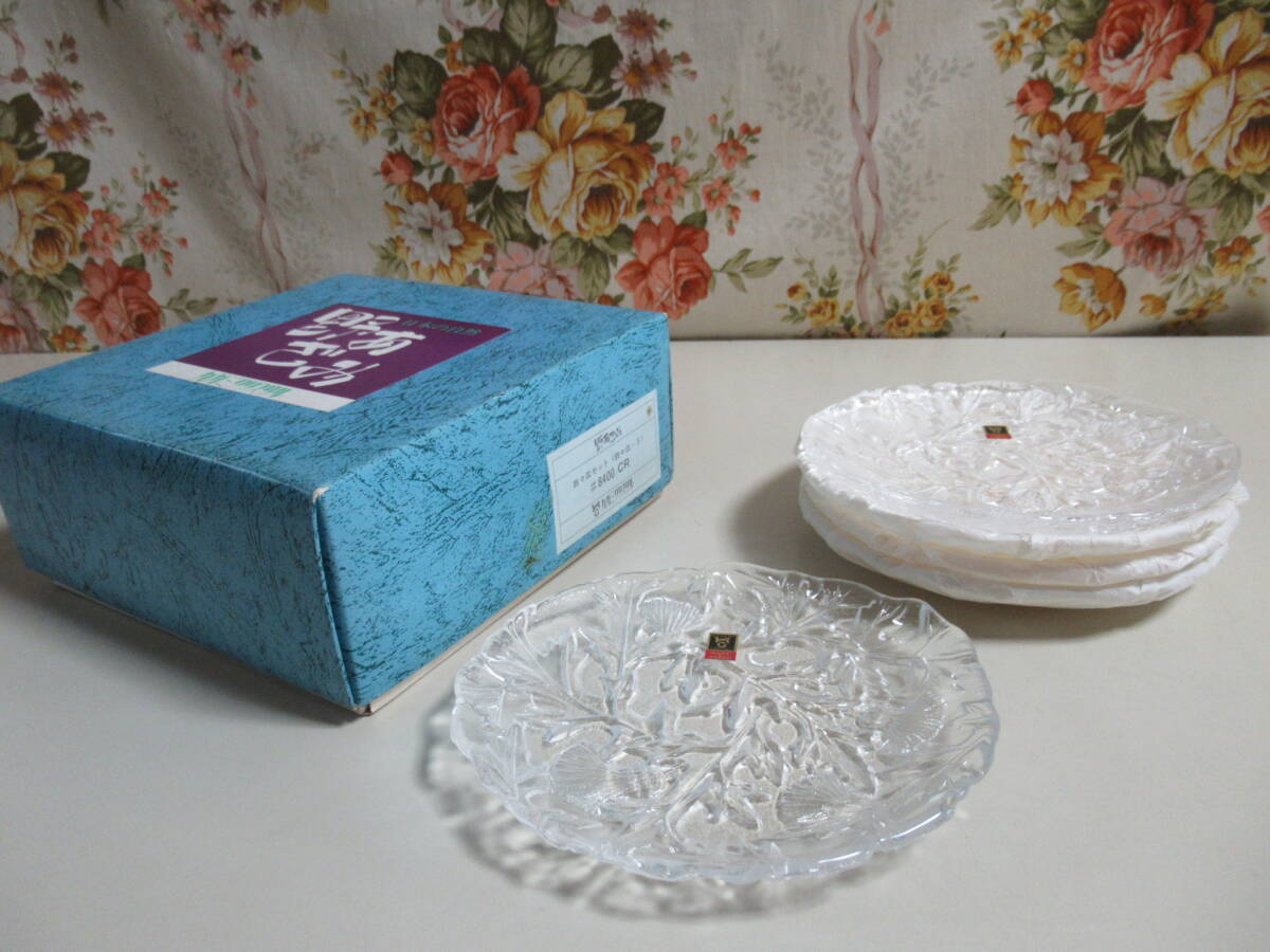 - R7 06★カガミクリスタル 銘々皿5客セット 野あざみ 工芸品 ヴィンテージ 未使用