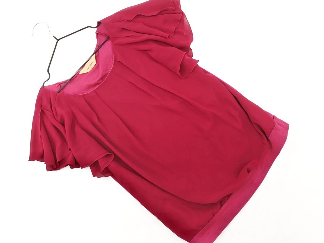 - SunaUna スーナウーナ シフォン 切替 フレアスリーブ カットソー 赤紫 ■◆ ☆ ffb0 レディース