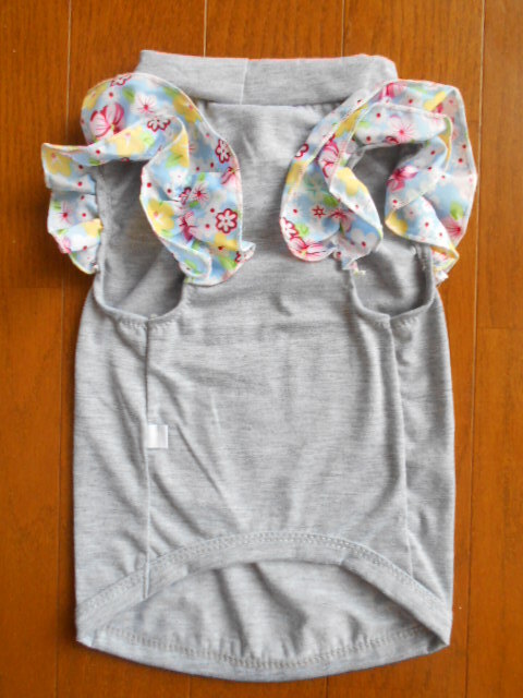 - 小型犬 可愛い フリフリお袖 Tシャツ L グレー