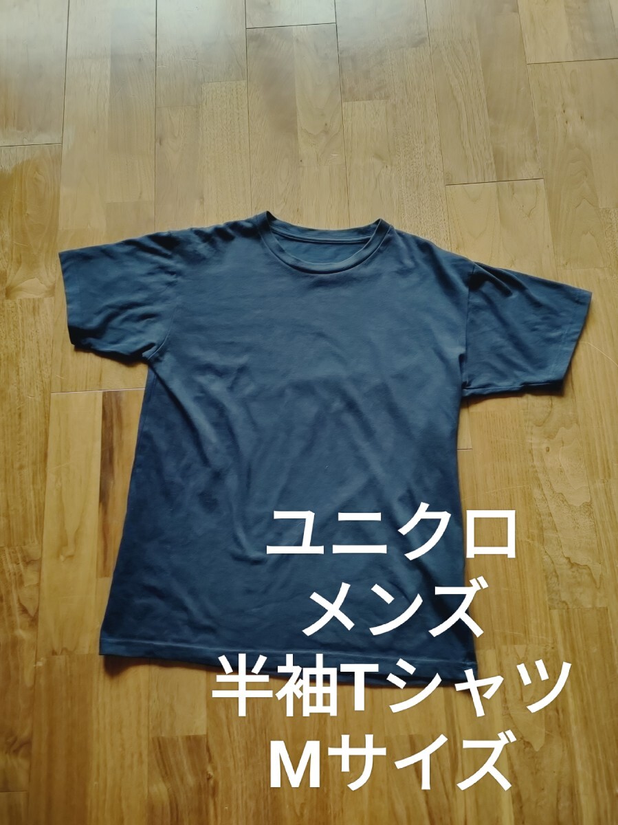 - ユニクロ メンズ 丸首 半袖 Tシャツ 無地 ネイビー M
