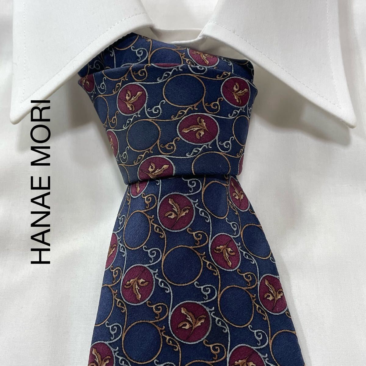 - HANAE MORI ハナエモリ ボタニカル パターン柄 シルク ネクタイ 日本製 ネイビー ワイン ブラウン ブルー TG1961