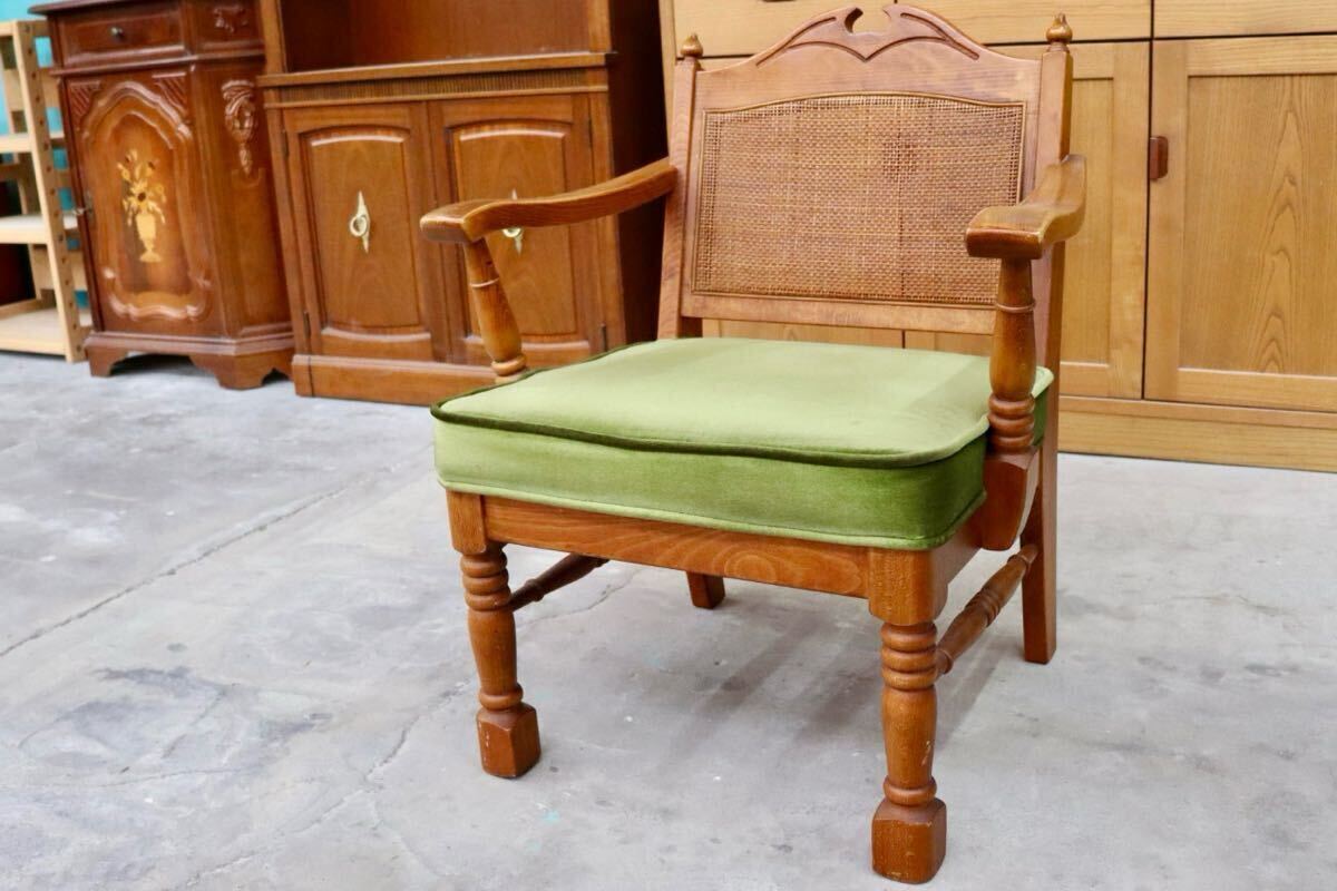 > GMIH73○KASHIWA / 柏木工 アームチェア ダイニングチェア 椅子 レトロ 飛騨の家具 カフェ アンティーク ヴィンテージ ファブリック 木製
