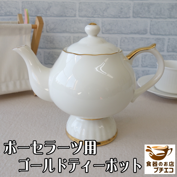 - わけあり 金線 付き ゴールデン ティーポット ポーセラーツ 満水 600ml 超 ティーバッグ用 蓋 茶こしなし アウトレット 食洗機対応 中国製