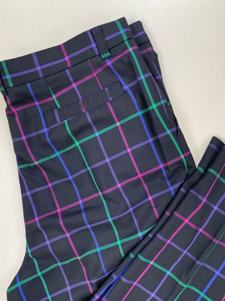 - ★ ヴィンテージ GREENCLUB チェック柄 2タック パンツ 黒系 105サイズ ◆ ウールギャバ スラックス グリーンクラブ ◆W25 VKあY1-10