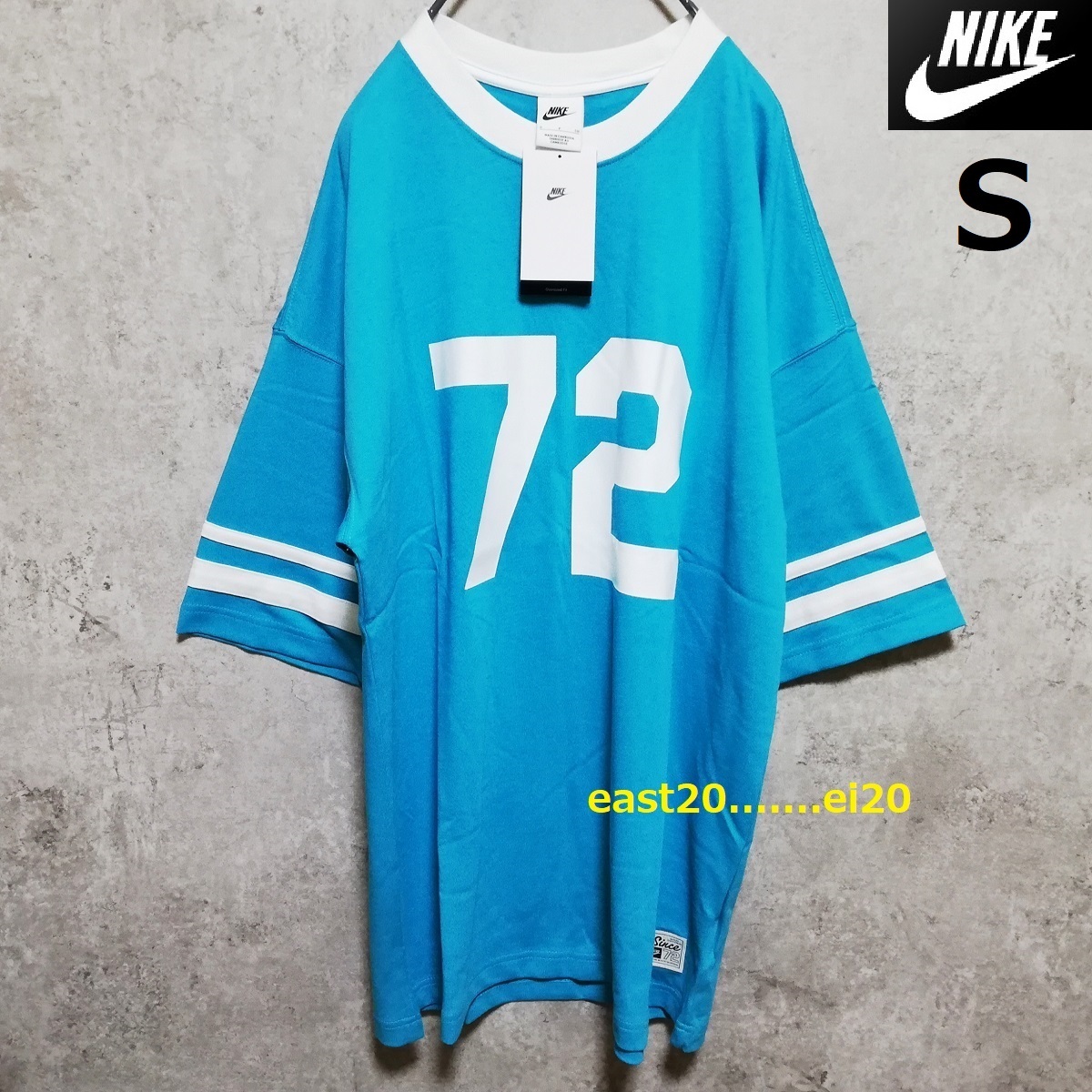 > 新品 NIKE 72 NSW OVERSIZED ナイキ ロゴ 刺繍 72 オーバーサイズド ジャージ― ティー Tシャツ S ブルー 未使用 ストリート 即決 送料無料