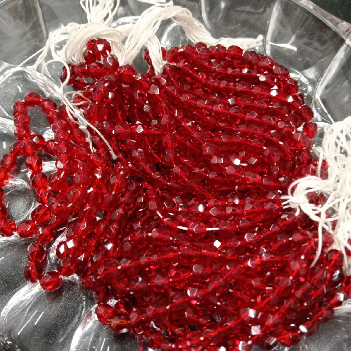 > ☆未使用 大量 チェコ ファイアポリッシュ ガラスビーズ 135g 6×5mm シャム レッド 赤 大粒 ヴィンテージ アクセサリー ネックレス S-13