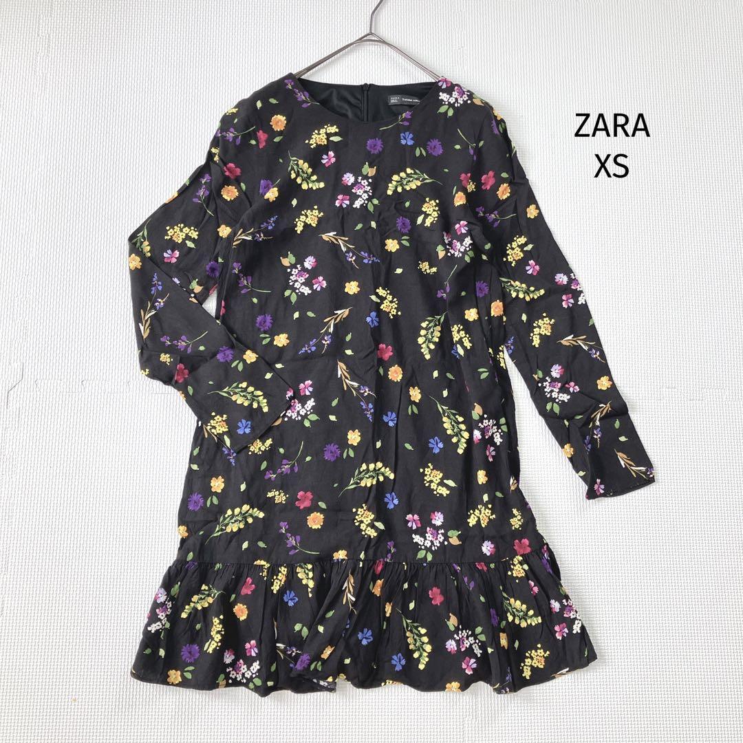 - ザラ ZARA ワンピース【XS】膝上丈 ブラック 黒 フレア 長袖
