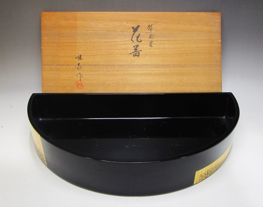 - 《ジャムルK》KKg0613-141◆石川県 輪島塗 井波 唯志 金彩花器 花生 水盤 共箱