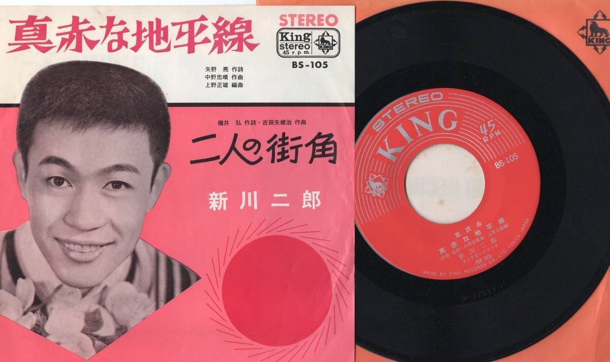 - 3726【EP盤】 ☆めったに出品されない ☆状態良好☆ 新川二郎:真赤な地平線/二人の街角 ☆≪貴重レコード≫