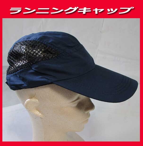 > ★★つば長メッシュキャップ ネイビー 紺 ジョギング つば長い帽子 熱中症 日差し ランニング 新品即決
