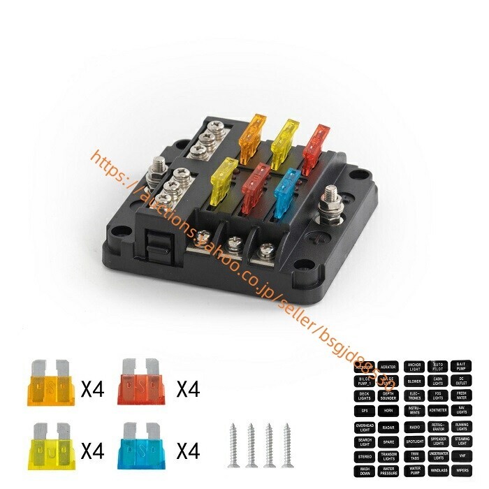 - 6ウェイ 回路カーボート ヒューズボックス ホルダー LED警告ライト キット付き ATO ATC ブロックヒューズ 2202