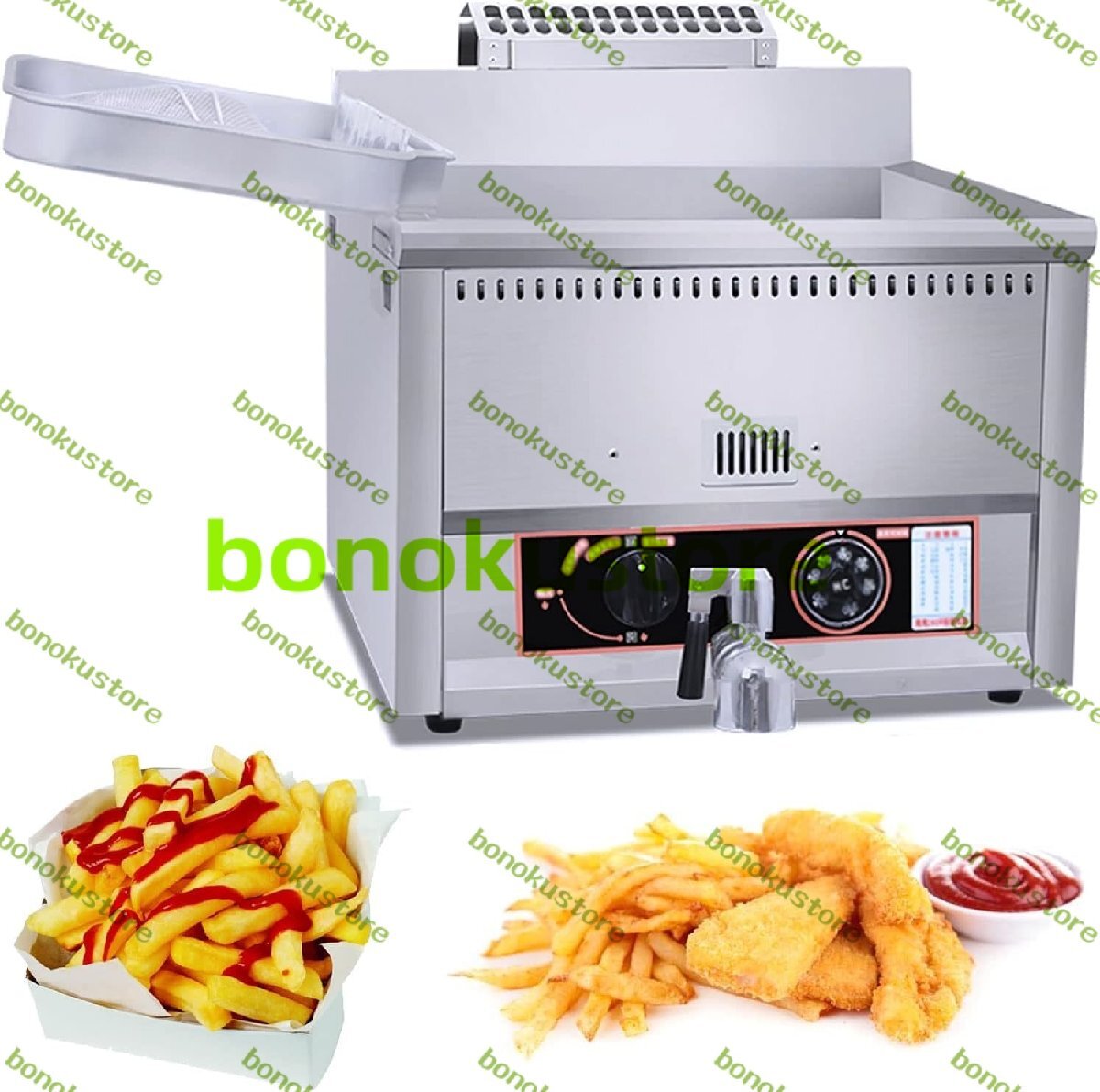 > 17L ガスフライヤー ステンレススチールタンク 卓上 大容量 ガスフライヤー お手入れ簡単 手動温度調節 フライドポテト ホームキッチン
