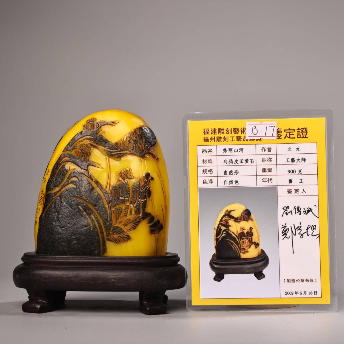 - 蔵友旧蔵出 寿山石 烏鴉皮 田黄石 細密彫 秀麗山間紋 印章 箱付 貴重品 稀少物品 置物 賞物 中国時代美術品