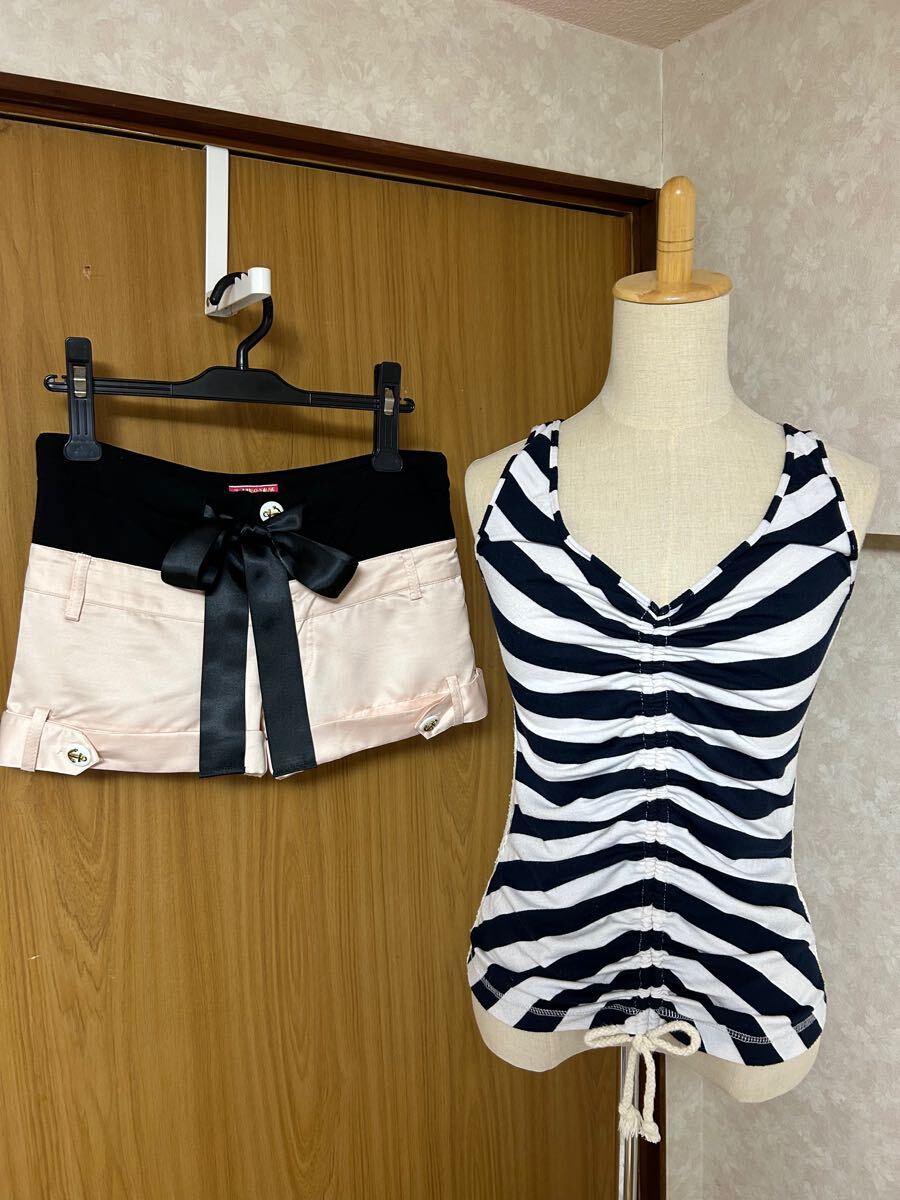 - グラマラスジェーン マリンコーデ セット タンクトップ サテンショートパンツ ノースリーブトップス