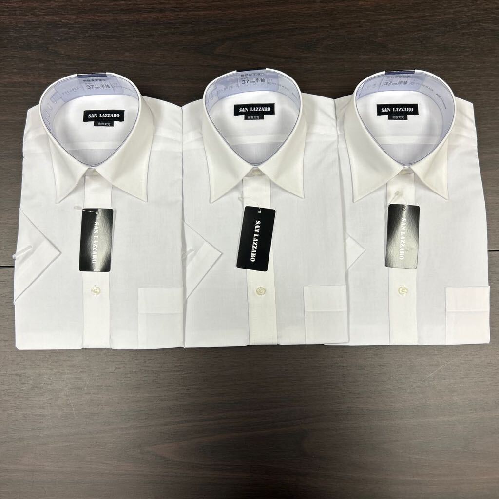 - 半袖形態安定ドレスシャツ 3枚セット 白無地 37cm