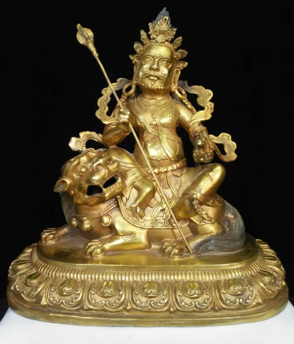 - 仏像 清代 旧蔵 チベット古寺 古銅金護法神 『多聞尊天王』仏像 銅製 銅琉金 唐物 收蔵品 時代物 古美術 古置物 希少 供養品 文房具6.15