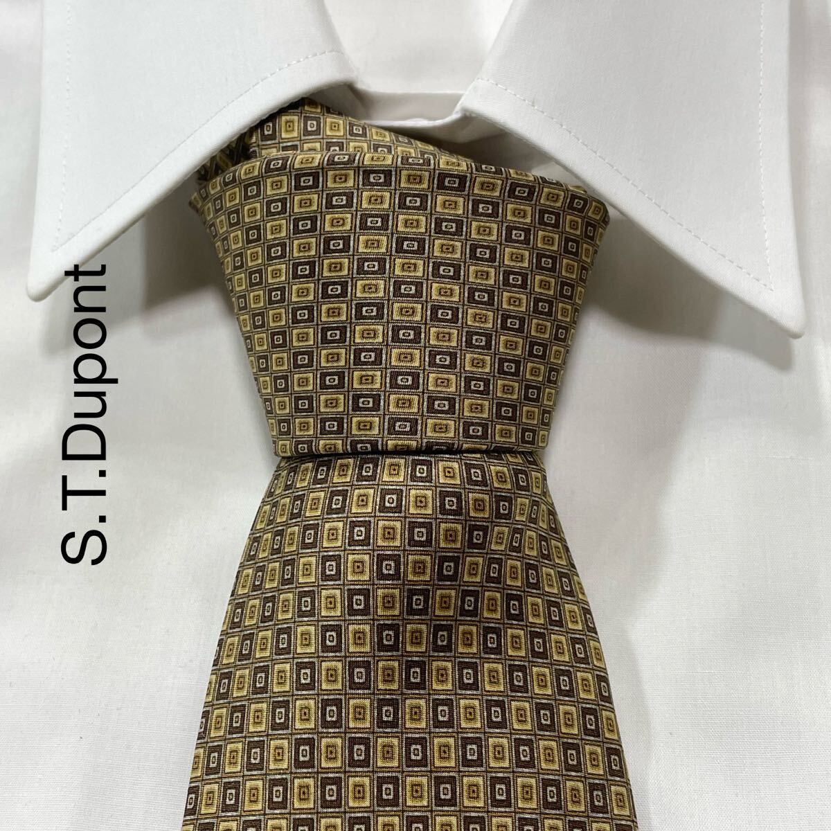 - S.T.Dupont エステーデュポン パターン柄 シルク ネクタイ イタリア製 ブラウン TG2341