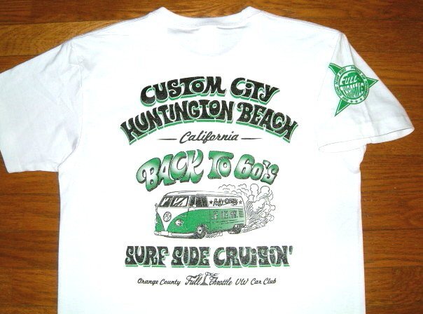 背中に大きくメインモチーフの【カスタムカー(ワーゲンバス)】が、