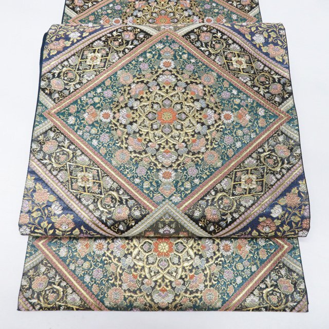 - 袋帯 中古 リサイクル 正絹 フォーマル 仕立て上がり 六通 花模様 華文 花紋 箔糸 多色 金 きもの北條 A1211-9