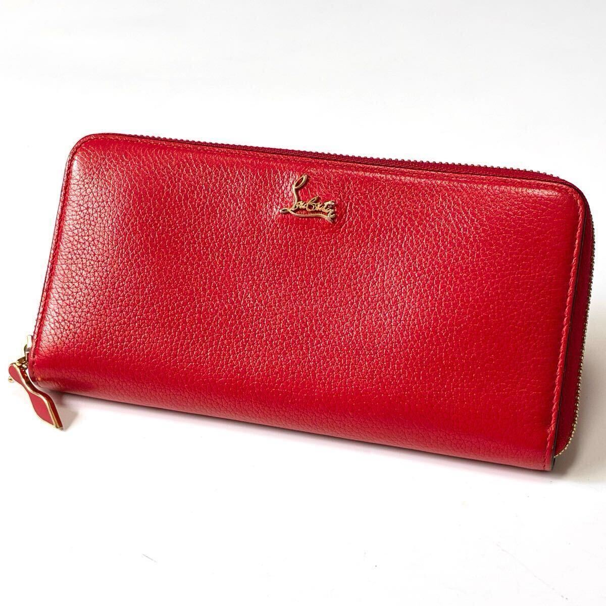 - ★Christian Louboutin クリスチャン ルブタン パロマ ラウンドファスナー ジップ 長財布 レザー レッド【鑑定済み 本物保証】