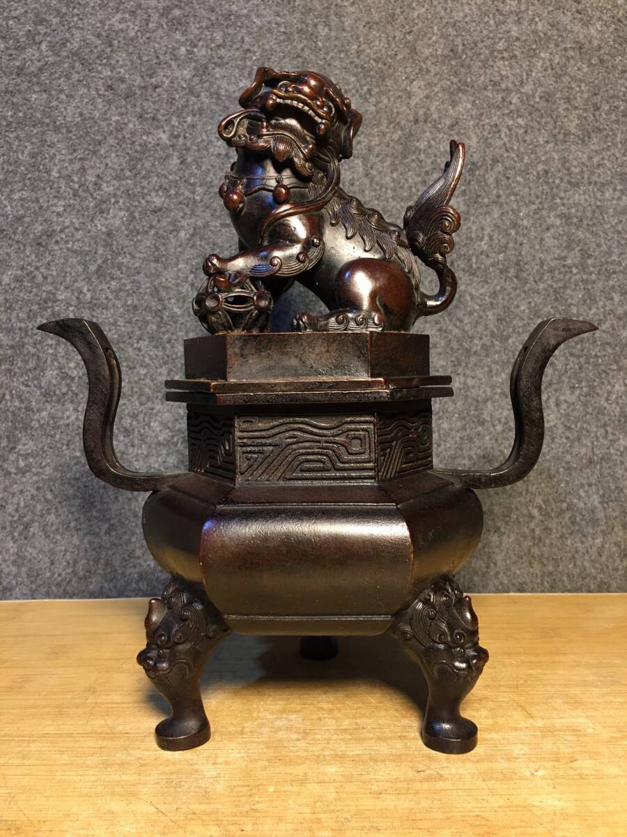 - 蔵友旧蔵出 銅製 雙獣耳雙獣足 獣鈕熏香爐 希少珍品 貴重品 置物 古賞物 中国古玩 中国古美術品