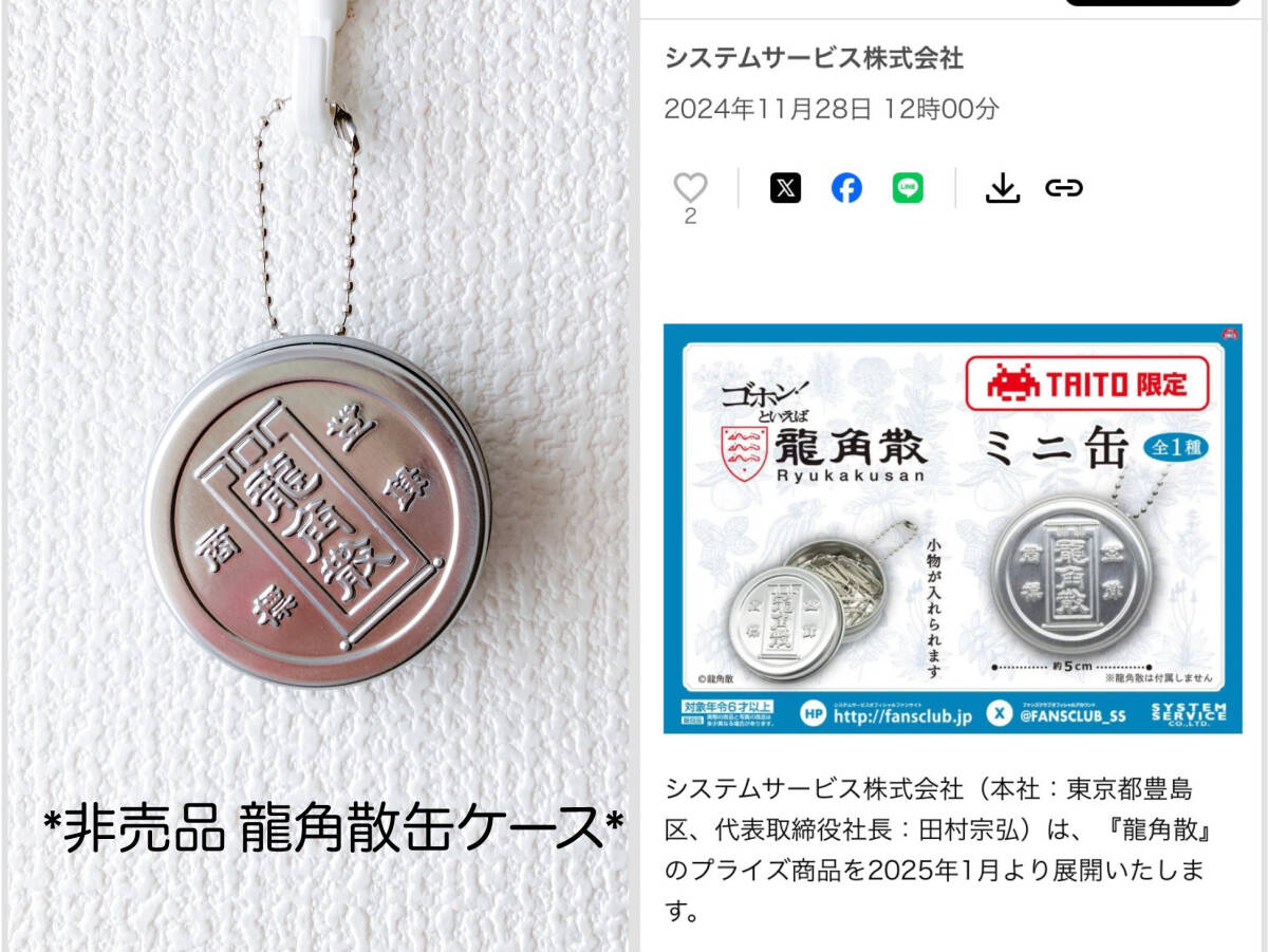 - 2025年製 在庫有り 新品 TAITO限定品 非売品 レア 龍角散 ミニ缶 缶ケース プライズ品 キーホルダー 丸型 小物入れ