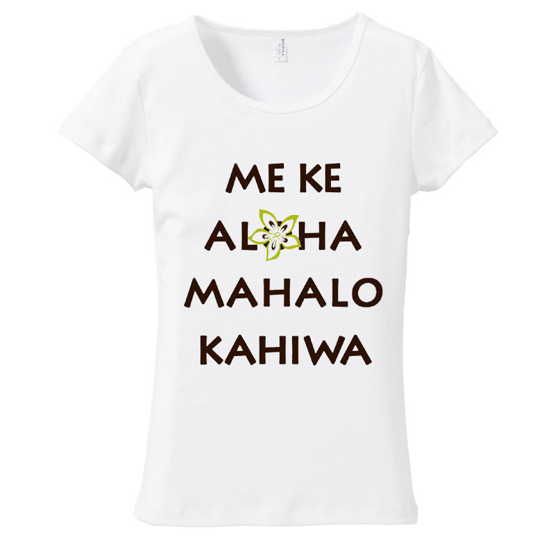 - (L)ホワイト【tf068】ロゴ&ハワイアンハイビスカスフラワー*フラダンスメール便発送Tシャツ半袖送料無料ハウラレディース南国夏カジュアル