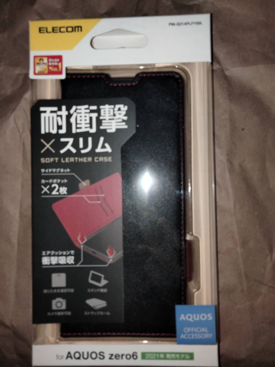 > ELECOM AQUOS zero6 SHG04 ブラック ソフトレザーケース 磁石付 耐衝撃 ステッチ 便利な7つの機能を搭載した革のようなやわらかな風合い