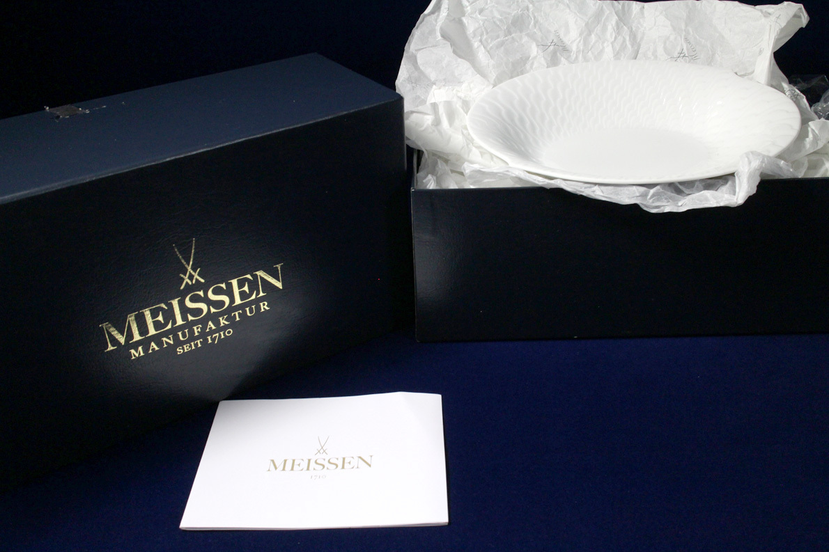 - 未使用品【マイセン[波の戯れ・ホワイト・オーバルディッシュ・deep bow・3客セット]】