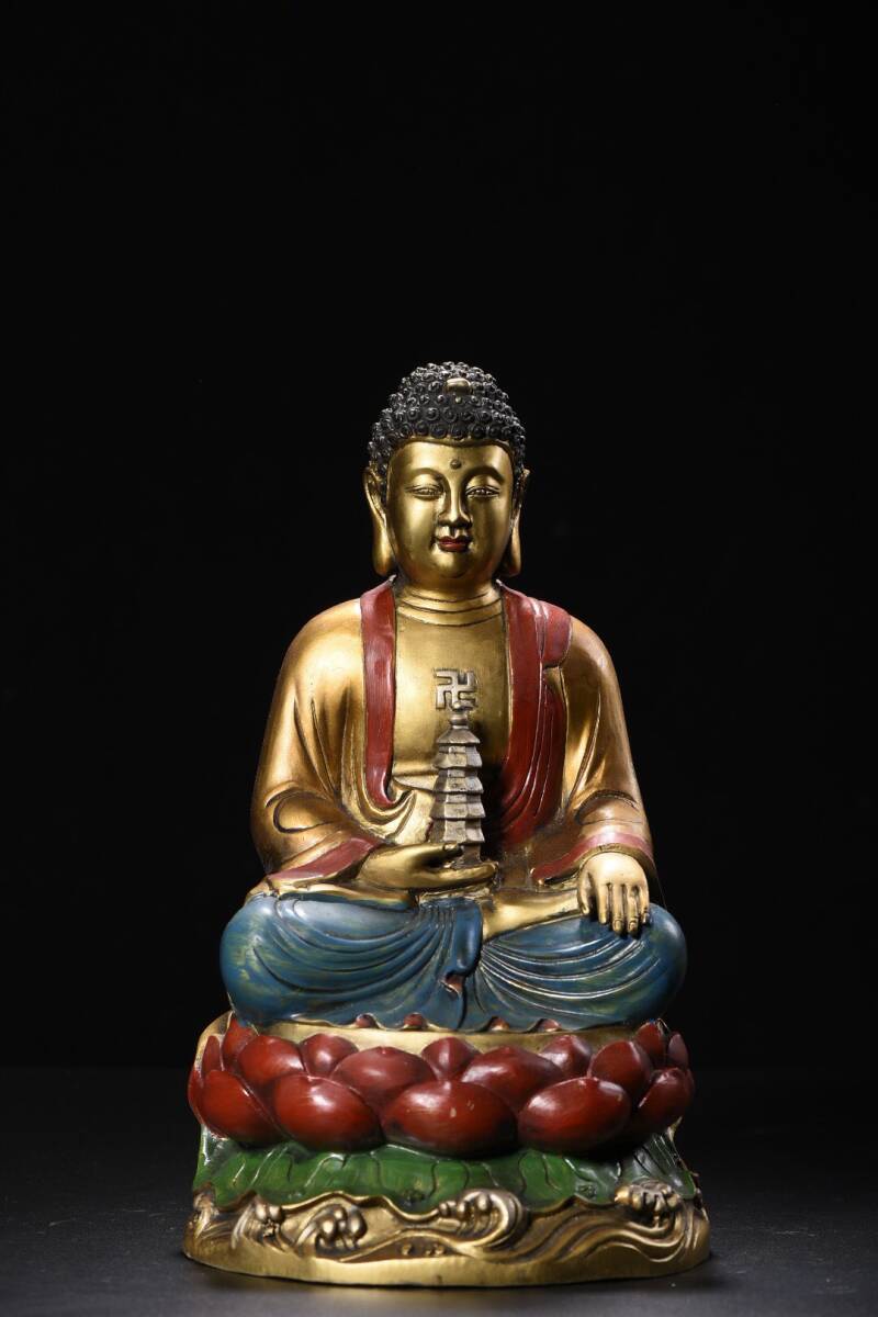 - 蔵友旧蔵出 銅製 描金 彩繪 大日如來像 希少珍品 貴重品 置物 古賞物 密宗密教 供養品 仏教美術品