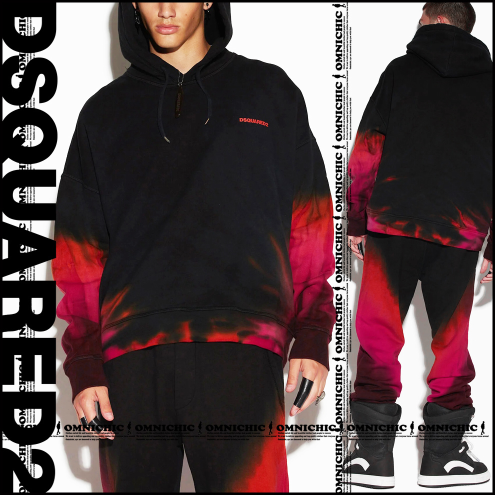 - 新品113,300円■23春夏【DSQUARED2】ディースクエアードD2 Flamen Tie&Dyed K2 Over Hoodie/フラメンタイダイK2ロゴオーバーパーカーL/伊製