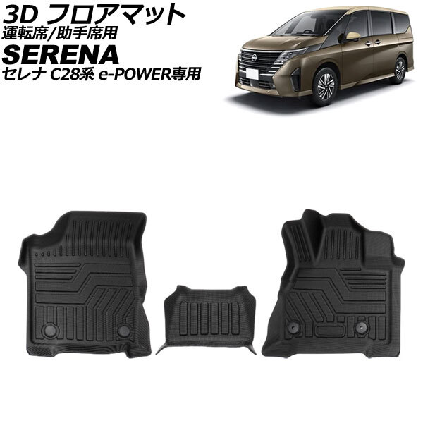 > 3D フロアマット 運転席/助手席用 日産 セレナ C28系 e-POWER専用 7/8人乗り 2022年12月~ TPE素材 立体構造 防水仕様 入数:1セット(3個)