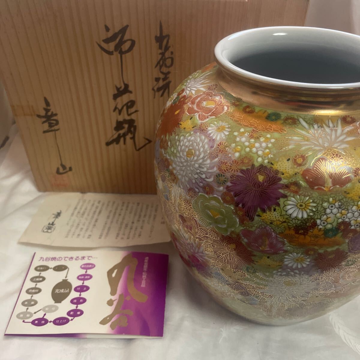 - ◎花瓶 九谷焼 西田章山 Xー25 美品 金彩 上絵付 花詰