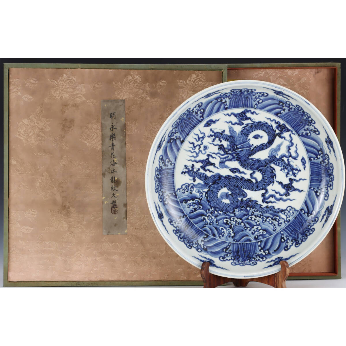 > 多宝閣 ■ 202318 中国磁器 中国骨董【明永楽青白海龍文大皿】工芸品 施釉陶 陶芸 置物 收藏品 孤品