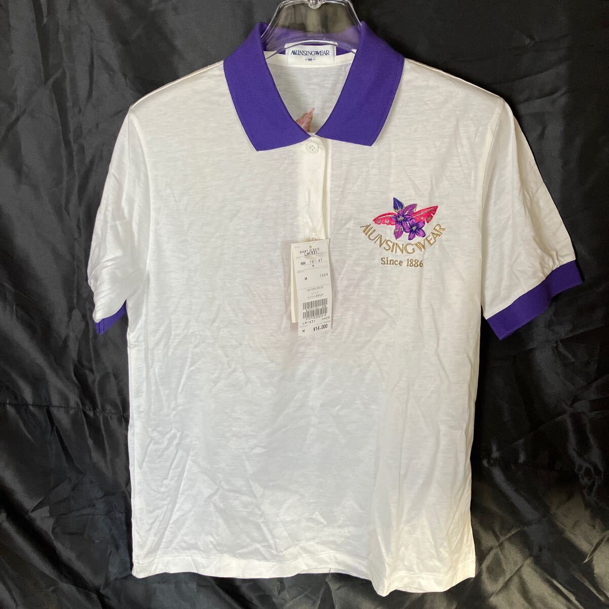 - F82 MUNSING WEAR LM1831 ポロシャツ Mサイズ ホワイト×パープル 新品未使用品