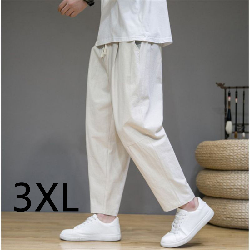 - ★サルエルパンツ ワイドパンツ メンズ ズボン 涼しい ワイドパンツ アンクルパンツ ゆったり テーパード ボトムス 米色&ホワイト 3XL