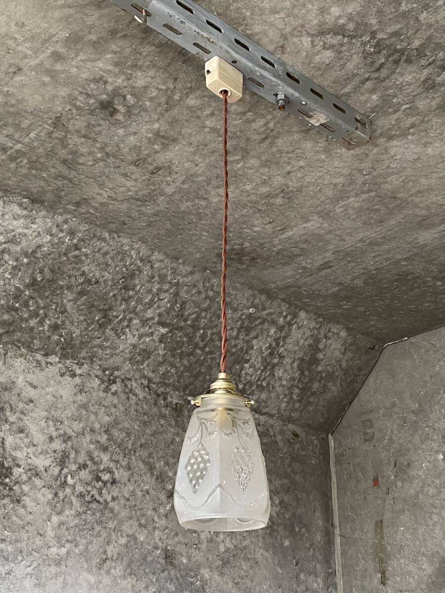 - 57. 40’s フランスアンティーク 古民家 ガラスシェードペンダントランプ フリル 吊り下げ シーリングライト 店舗 美容室
