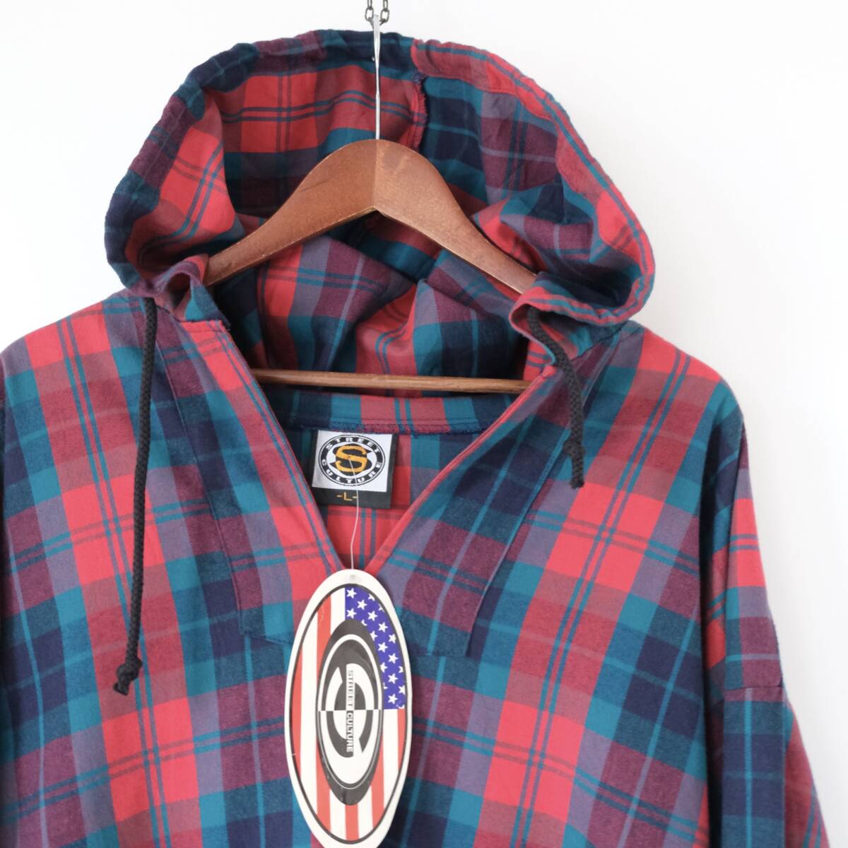 > デッドストック 90s【 street culture 】ビンテージ usa製 シャツ パーカー プルオーバー ジャケット / チェック柄 / L / アノラック
