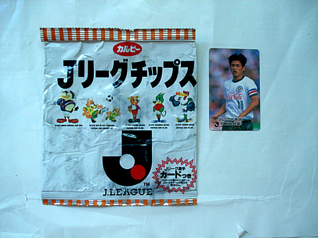 - カルビー 1993年 Jリーグチップス 初年度 パッケージ 空袋 カード1枚付属 サッカー 三浦知良 5チーム混合デザイン