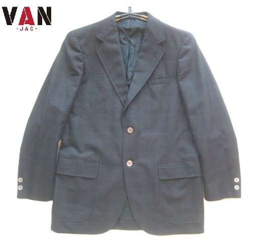 > 美品!!ヴァンヂャケット VAN JAC*チェック柄 段返り3つボタン ポリウールボタンジャケット 実寸M グレー 当時物 ヴィンテージ