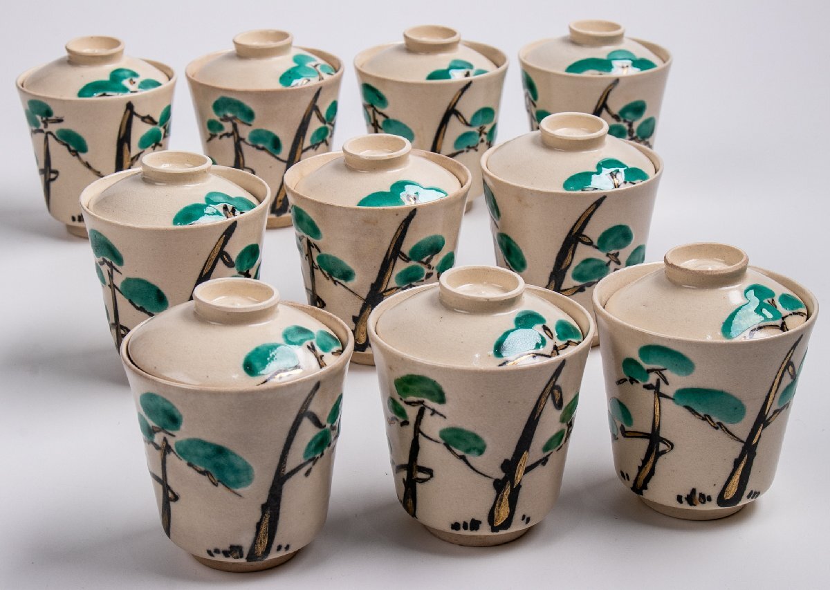 - 【うつわ】 真葛香斎 松之絵 小吸物碗 10客 共箱 E2040 骨董 古玩 唐物 茶道具 日本料理 料亭 懐石