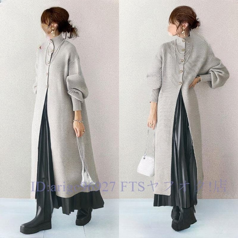 > 新品★秋冬 ロングワンピース ふんわり袖 ロング丈 ゆったり ざっくりセーターカーデ 大きいサイズ タートルネック で羽織上質