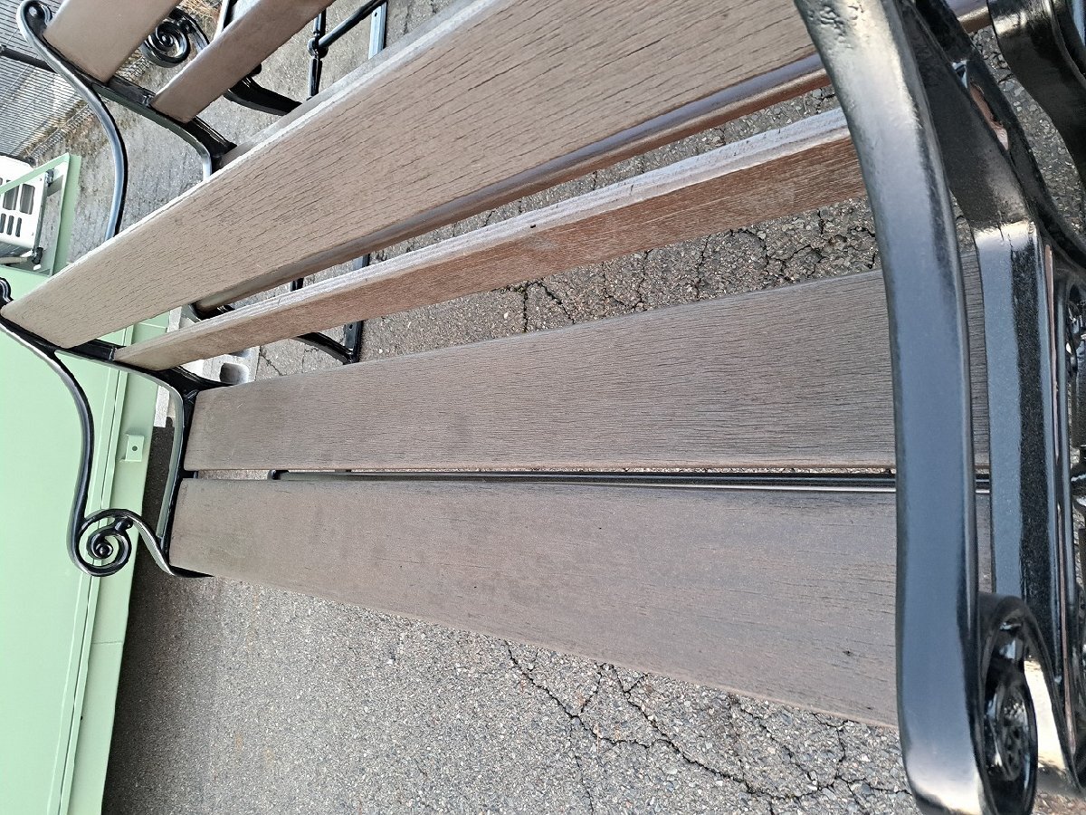 - c3A新長愛知ホサ050313-11(21)有 鋳物本体ベンチ洋風インテリアタイプ 塗装済 高級品 板材質樹脂 重量90kg位 レジャーランド 中古仕上済