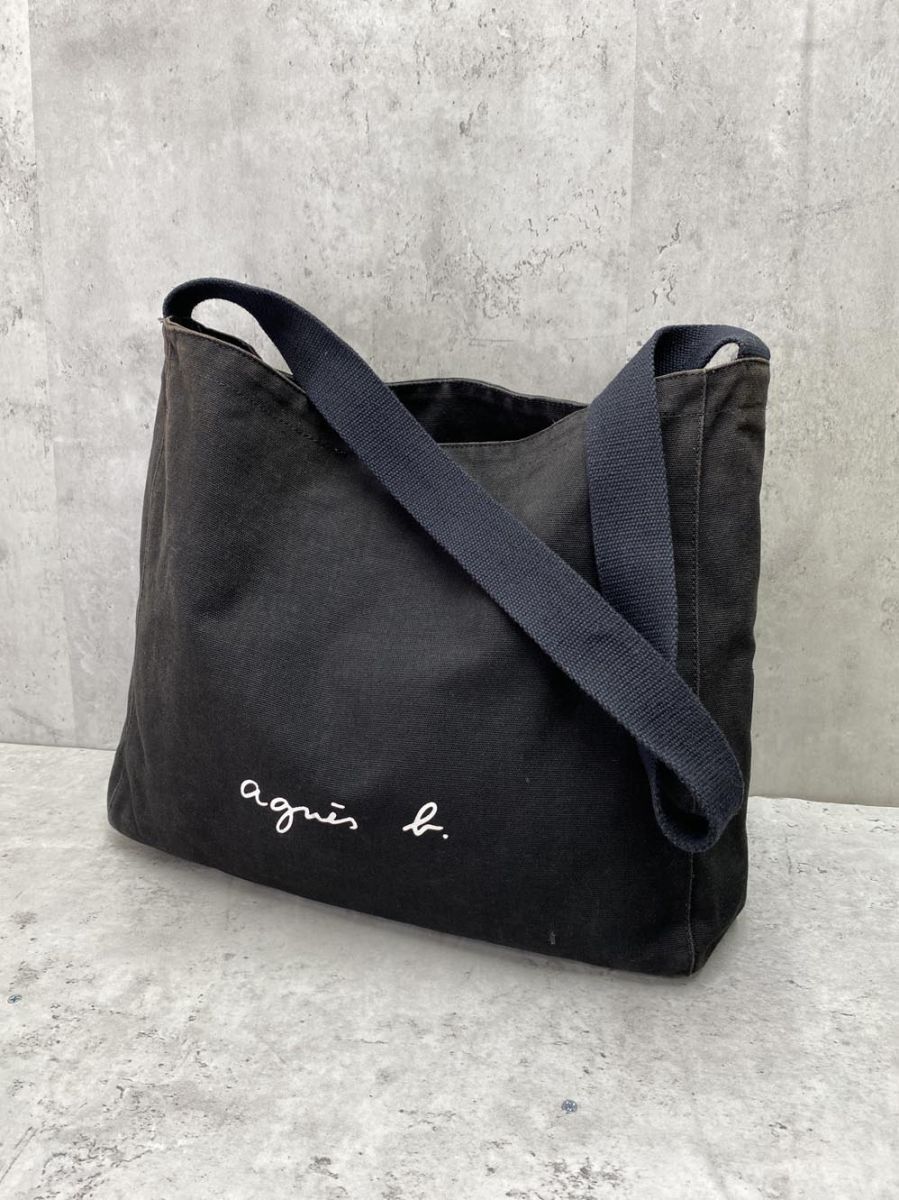- ゆうパケットOK agnes b. アニエスベー GO03‐03 コットン ロゴ ショルダー バッグ 黒 ■■